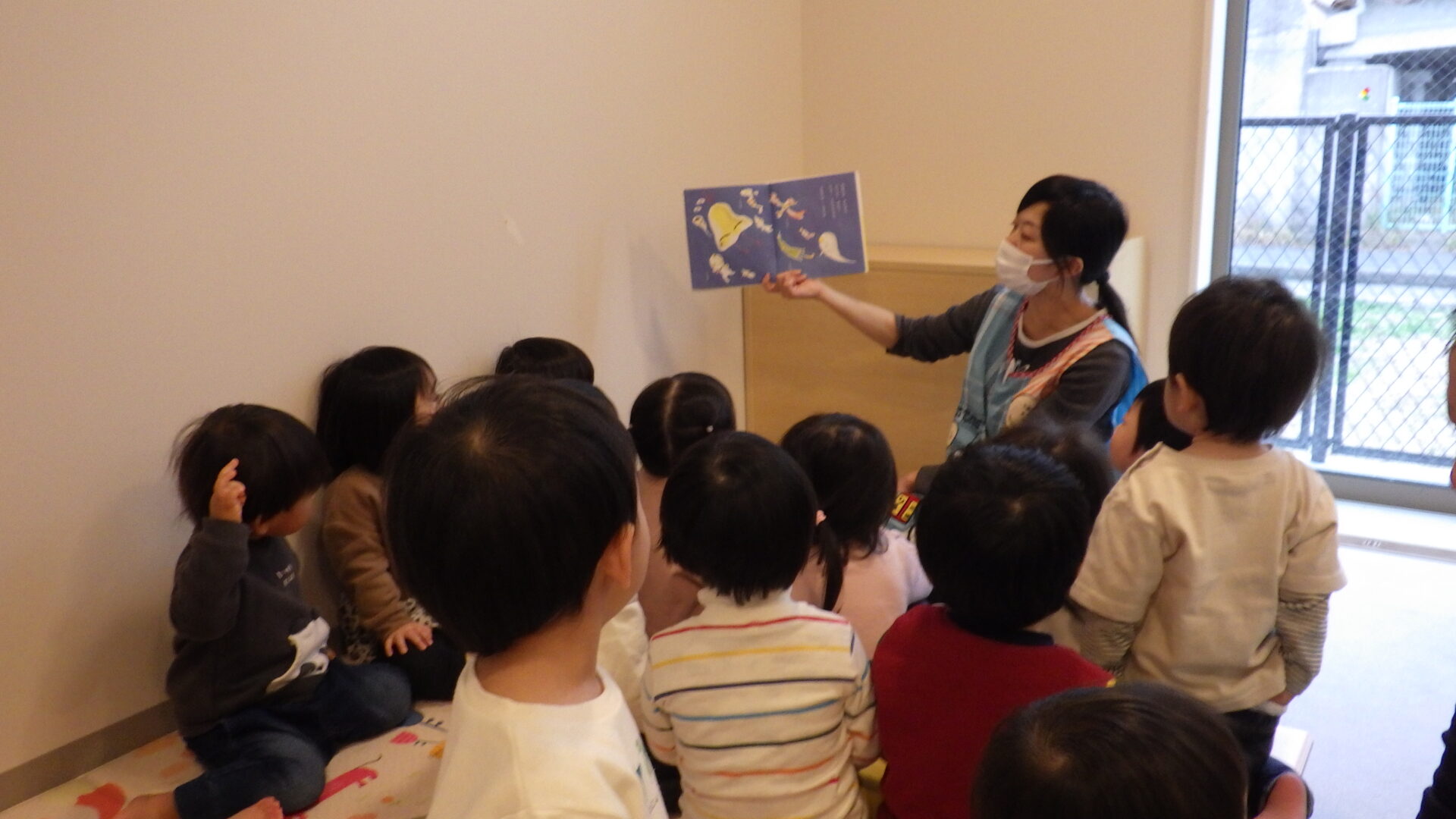 タオルを持っている子もお友だちも「ふむふむ。」と先生の話しを聞いています。