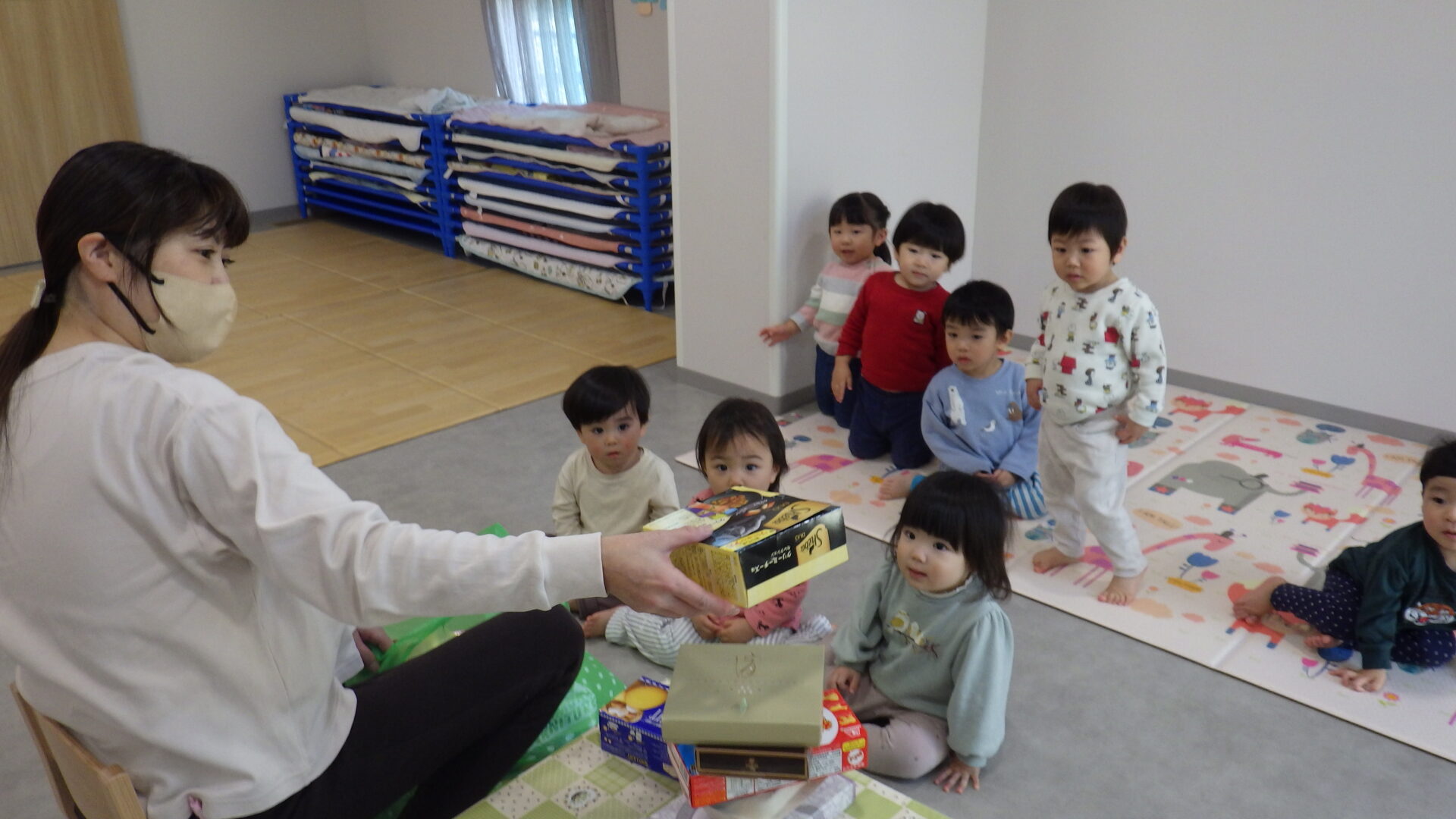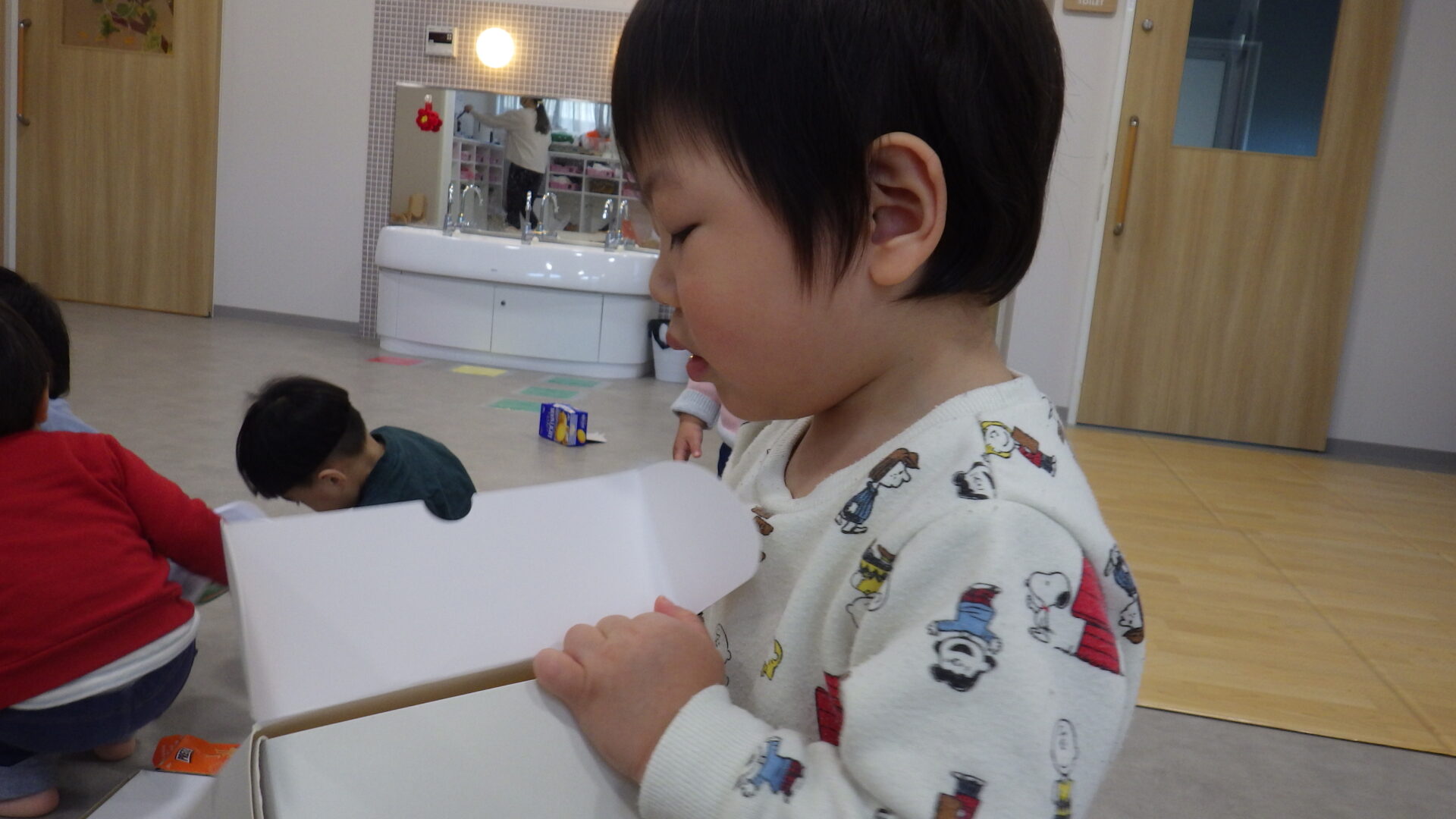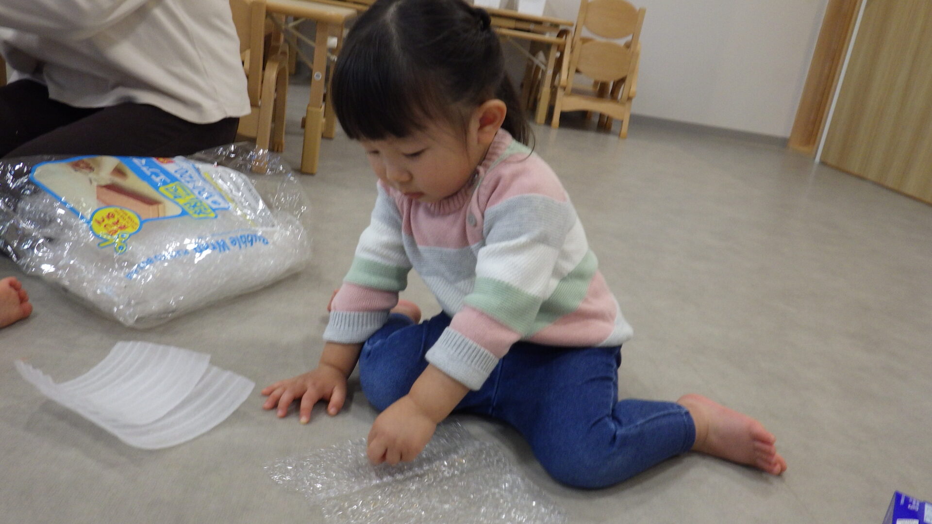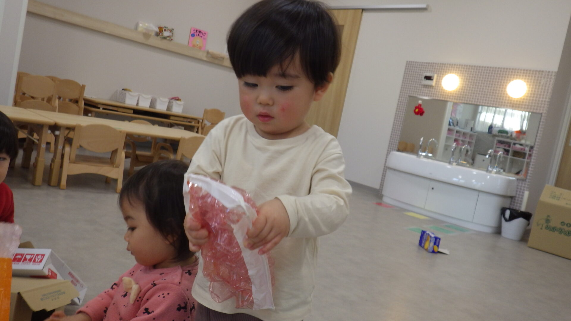 たくさんの箱や素材で遊んだだいち組(1歳児)さん。