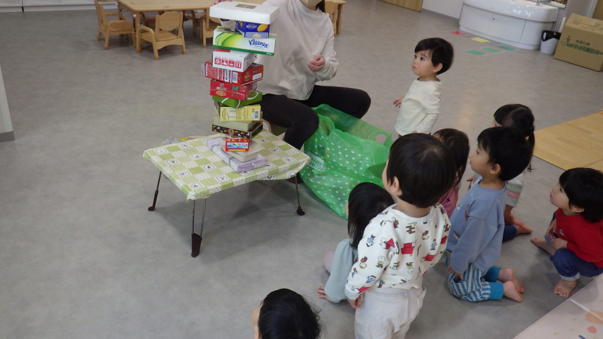 保育士がいろいろな形や大きさの箱を積み始めると・・・