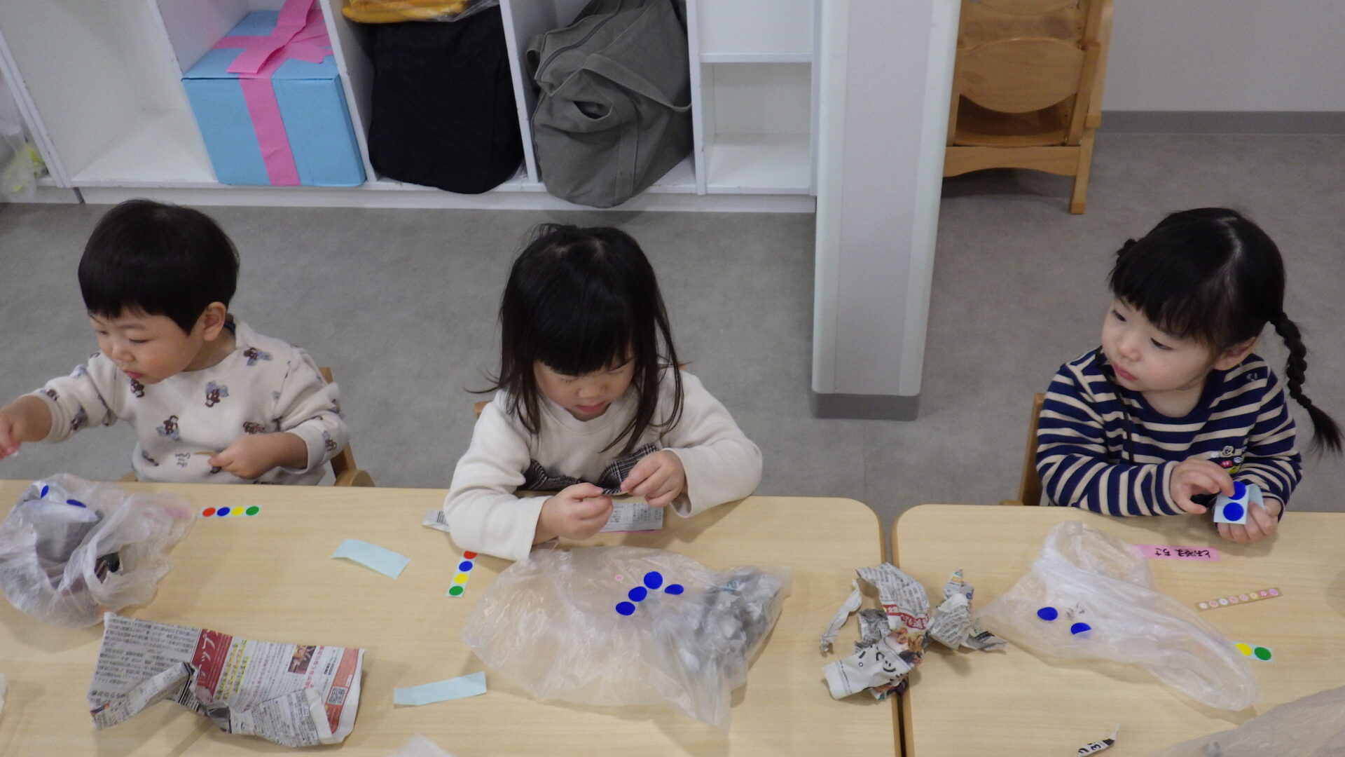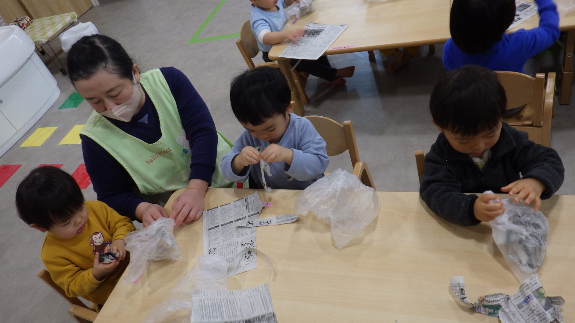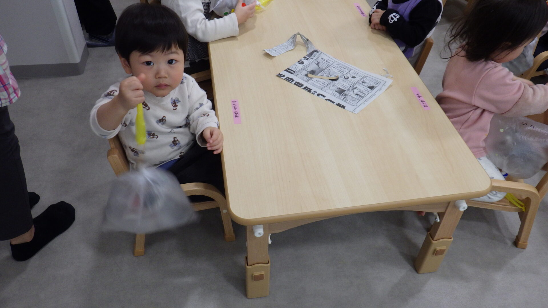 さて、この日は、「新聞紙ヨーヨー」を作って遊びましたよ!