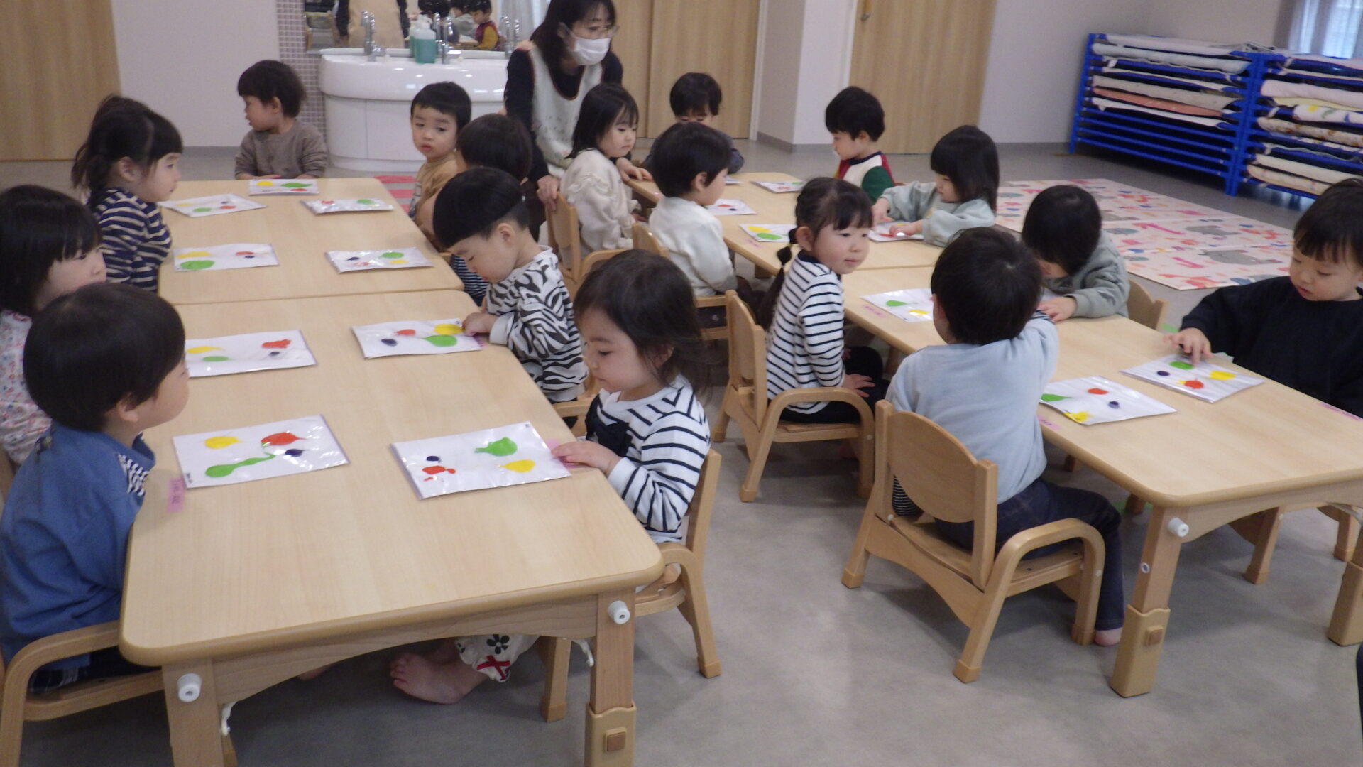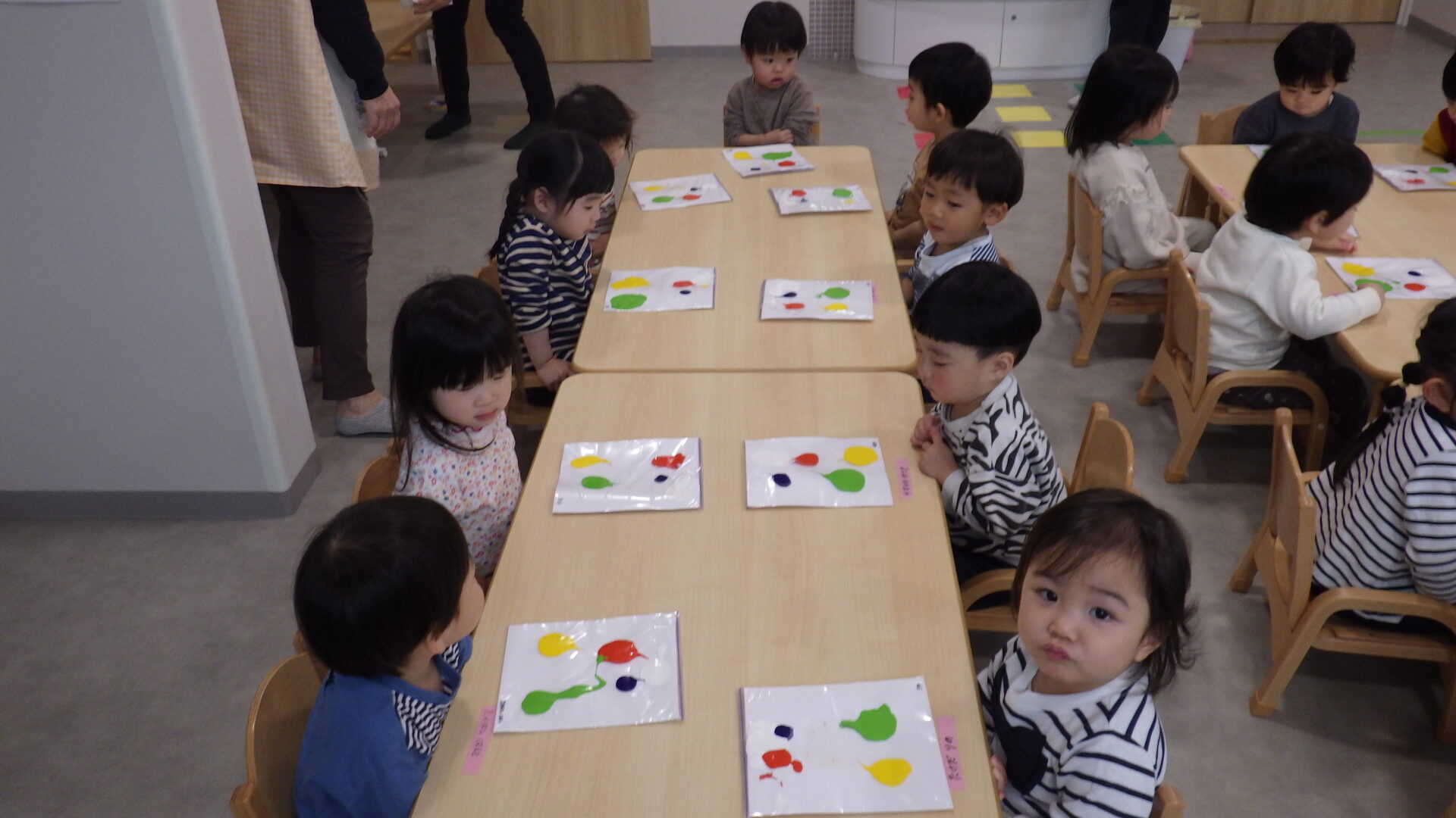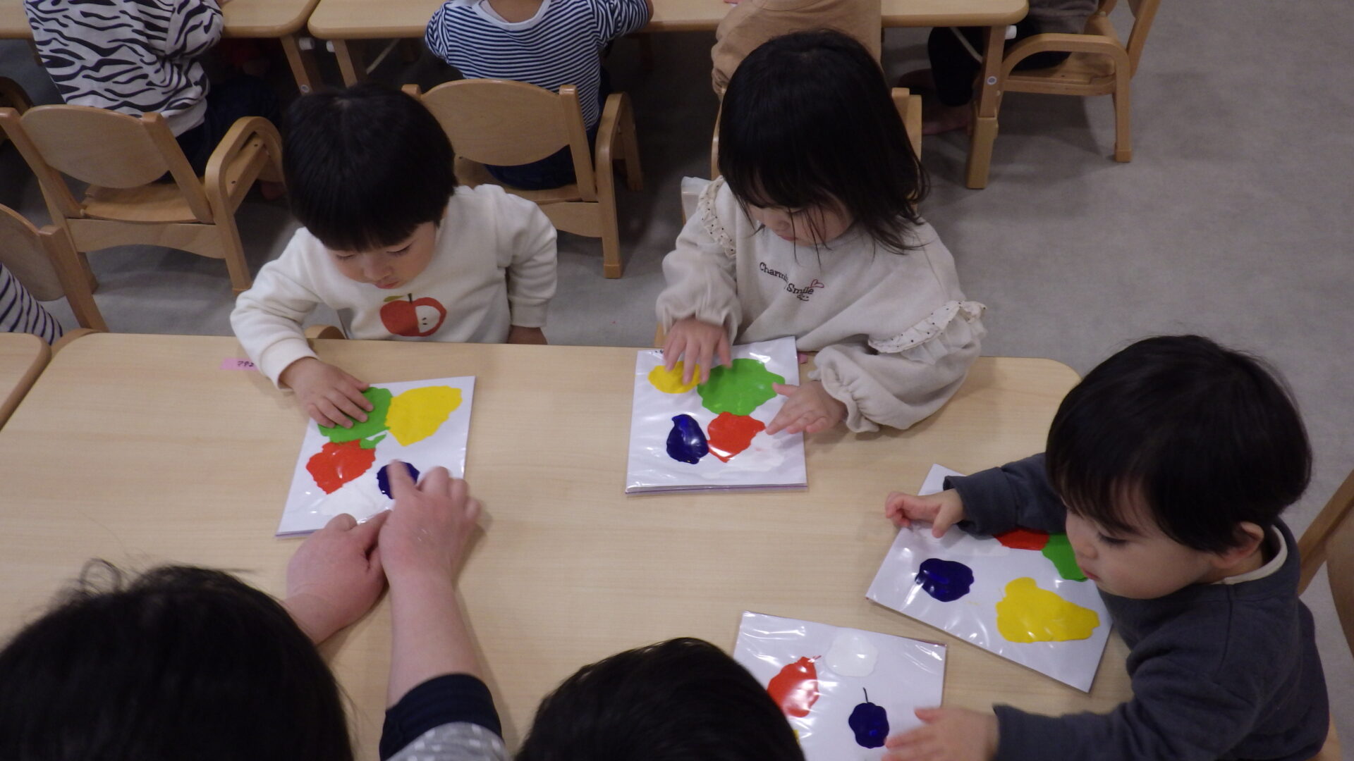 ビニール越しですが、指で絵の具の質感を感じることで、触覚からもアートを体感できたことでしょう(●^o^●)子どもたちにとっても良い経験になったはずです♪