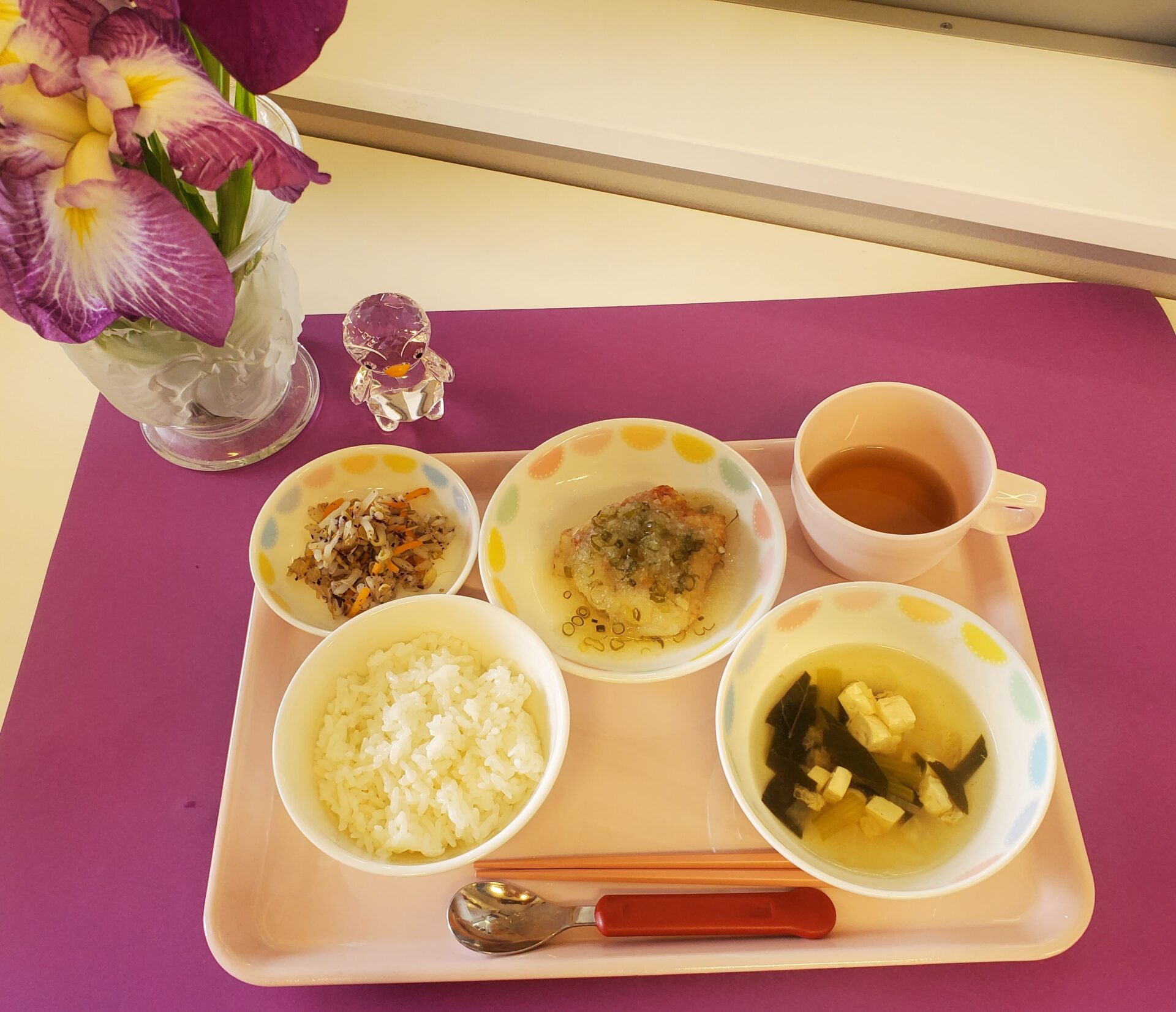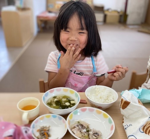 2023.06.07 うまかランチ 今日の献立 ごはん すまし汁 揚げ魚のみぞれ煮 もやしのゆかり和え 牛乳 チーズ蒸しパン あら~楽しくお食事中、ごめんなさい。 あんまりおいしそうに食べているから、 一枚撮らせてね。 一覧へ戻る