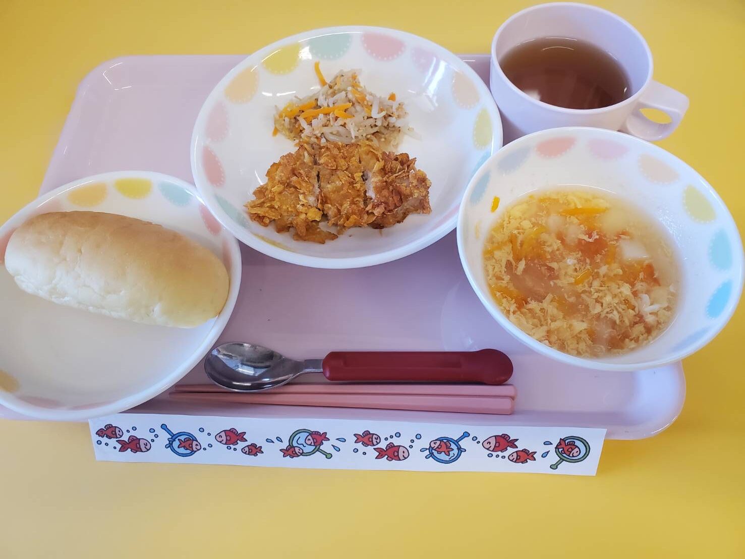 2023.08.01 給食献立 うまかランチ 8月1日(火)献立 コッペパン 鶏肉のコーンフレーク焼き もやしとツナのごま和え お茶 チーズ昆布おにぎり スプーンを使ってのお食事。 「おいしいですよ~」 一覧へ戻る