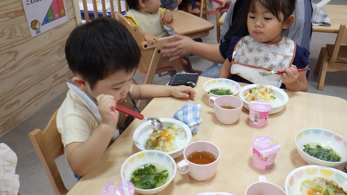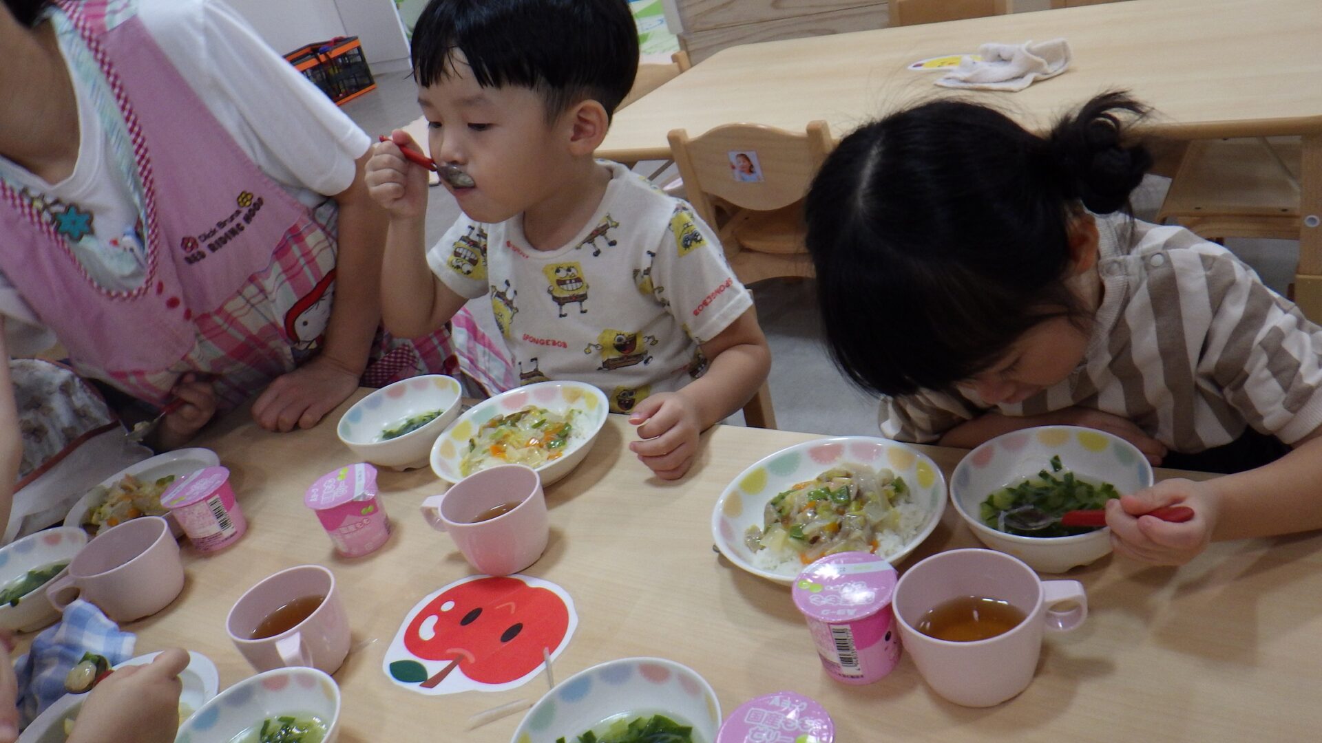 園庭から帰ってくると給食のおいしそうな匂いが…