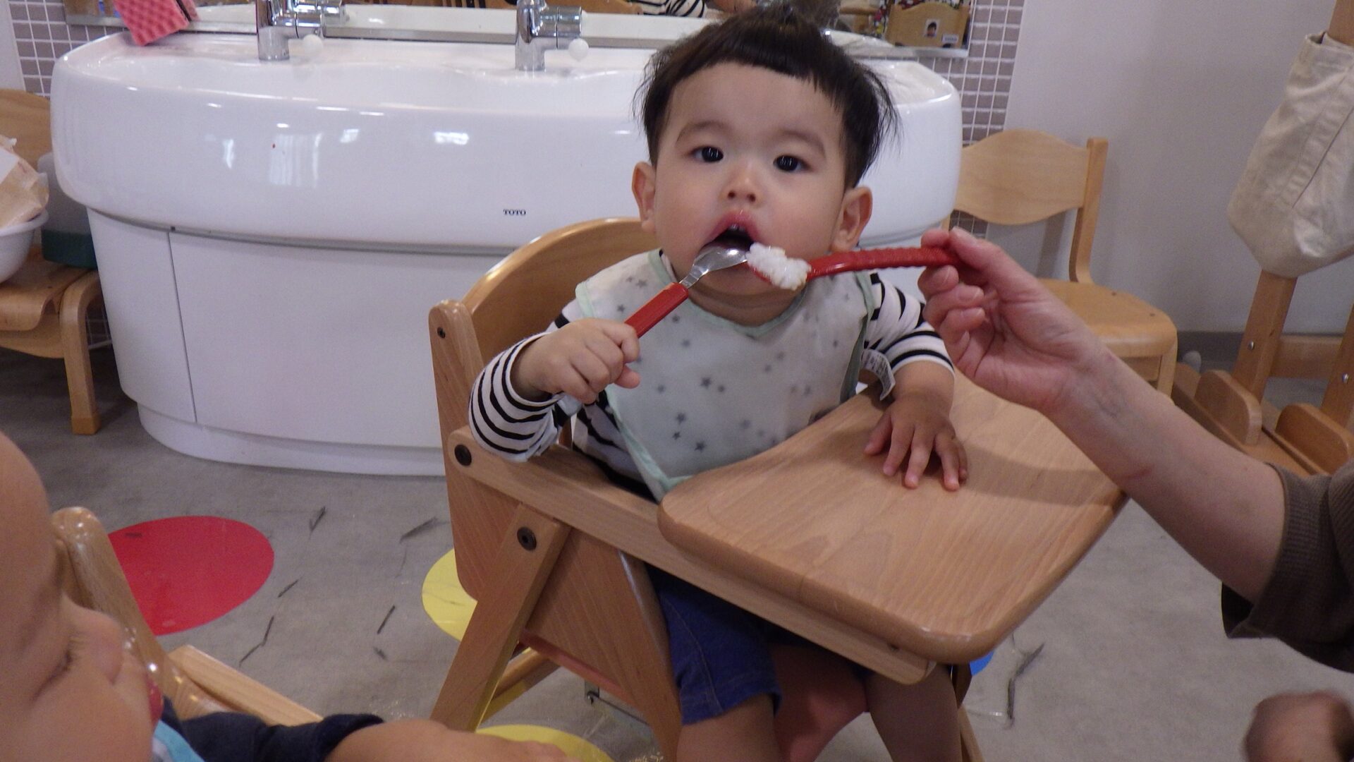 一口食べると「もう一口ちょうだい!」のアピールをしていました♪