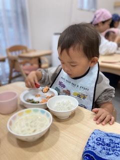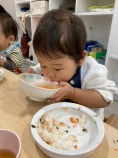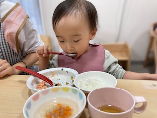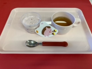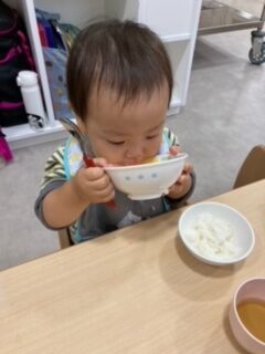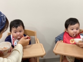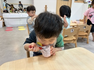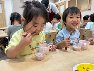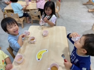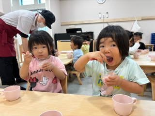 こちらは、午後のおやつタイムのあめ組(2歳)さん。とっても嬉しい様子。
