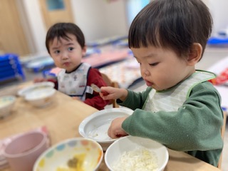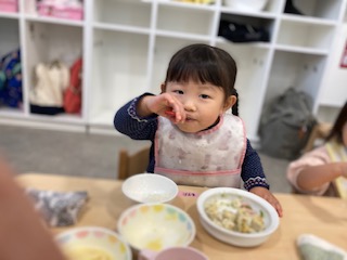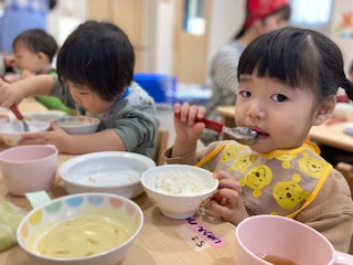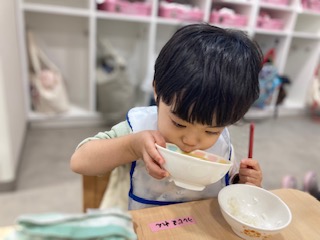 お茶碗もって~ごくごくごく。しっかり食べます。