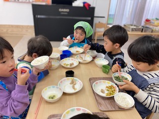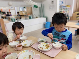今日もお友だちと会話が弾むくじら組(5歳児)、そら組(4歳児)。