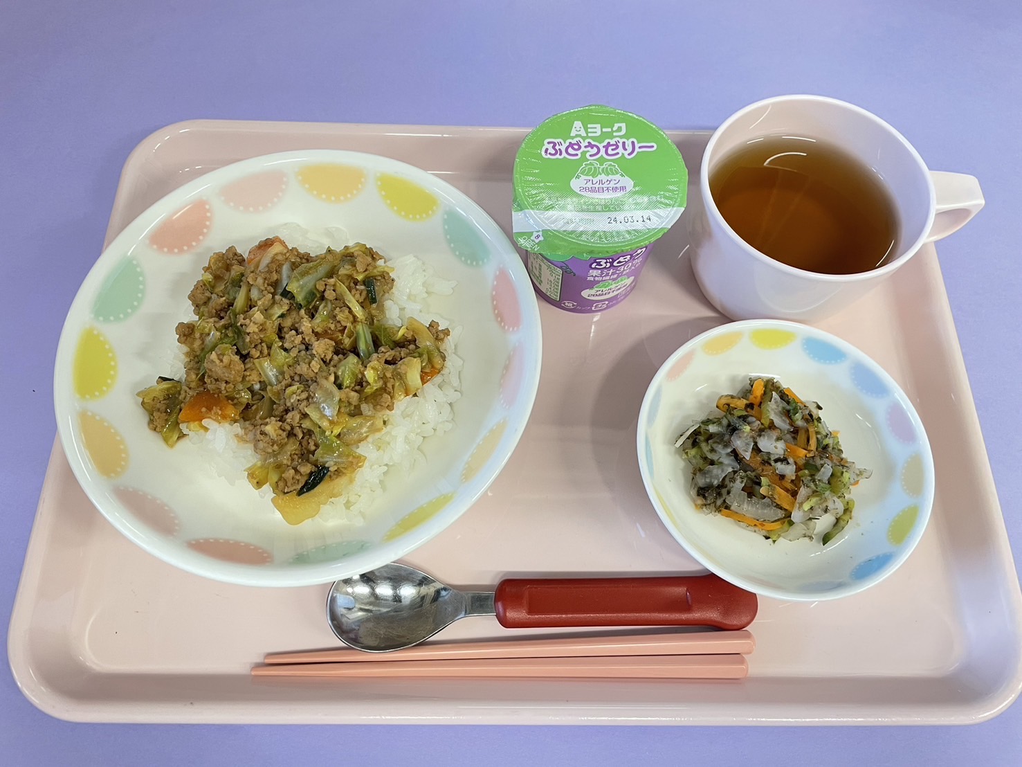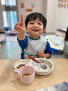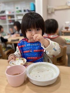 だいち組さん。しっかり食べた後は、お皿に残っているごはんやおかずを「あつまれ~あつまれ~」と言ってピカピカにしていました。