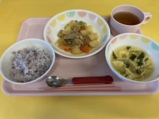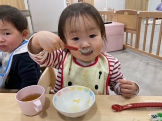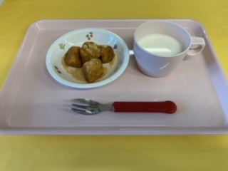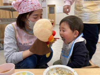 2024.03.05 給食献立 うまかランチ 3月5日(火)献立 ゆかりごはん かきたま汁 豚肉とじゃが芋の旨煮 牛乳 きな粉バナナ うみ組さん。アンパンマンに食べさせてもらって大満足でしたよ。 全部おいしかったのかな。お皿はピッカピカでした! 一覧へ戻る
